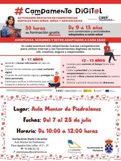 Durante el mes de julio, el Ayuntamiento de Piedralaves organizará un Campamento Digital, gratuito para niños y niñas entre 9 y 13 años. Aprenderán jugando a través de una aventura interactiva, en la que deberán completar etapas y cumplir misiones para conseguir logros. Serán 30 horas de actividades con las que conseguirán un certificado DigComp.