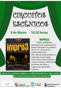 Un espectáculo de improvisación “IMPRO3” presentado por "Teatro Indigesto", una compañía aragonesa creada en 2007, especializada en Teatro de improvisación y comedia. Entre sus objetivos se encuentra transmitir valores y trabajar las emociones a través de la risa.