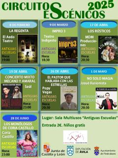 El domingo, 9 de marzo, en la sala multiusos de las “Antiguas Escuelas” contaremos con un nuevo espectáculo del Programa de Circuitos Escénicos de Castilla y León 2025.