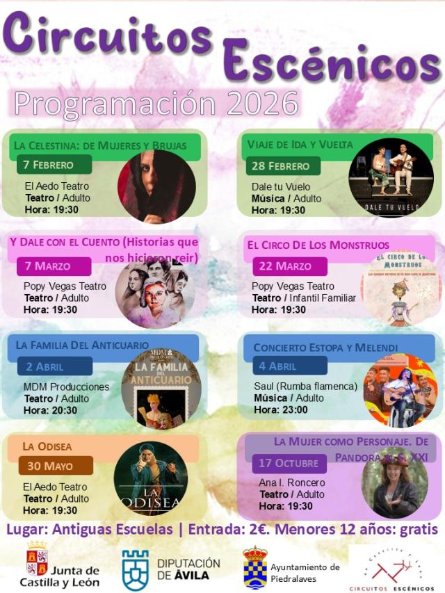 El 7 de febrero comienza la nueva temporada de Circuitos Escénicos en Piedralaves, un programa cultural cuyo objetivo es acercar el teatro y la música a municipios como el nuestro.
