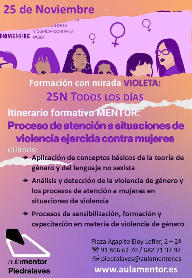 Aprovechando la celebración del “Día Internacional de la Eliminación de la Violencia contra la Mujer”, desde Aula Mentor de Piedralaves se ofrece el ITINERARIO FORMATIVO: