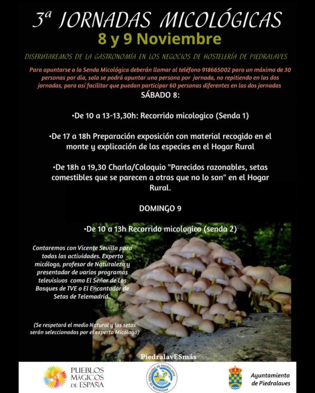El lunes, 27 de octubre, se abren las inscripciones para las III Jornadas Micológicas de Piedralaves, que se celebrarán los días 8 y 9 de noviembre. Un fin de semana dedicado al apasionante mundo de las setas y a la gastronomía local.