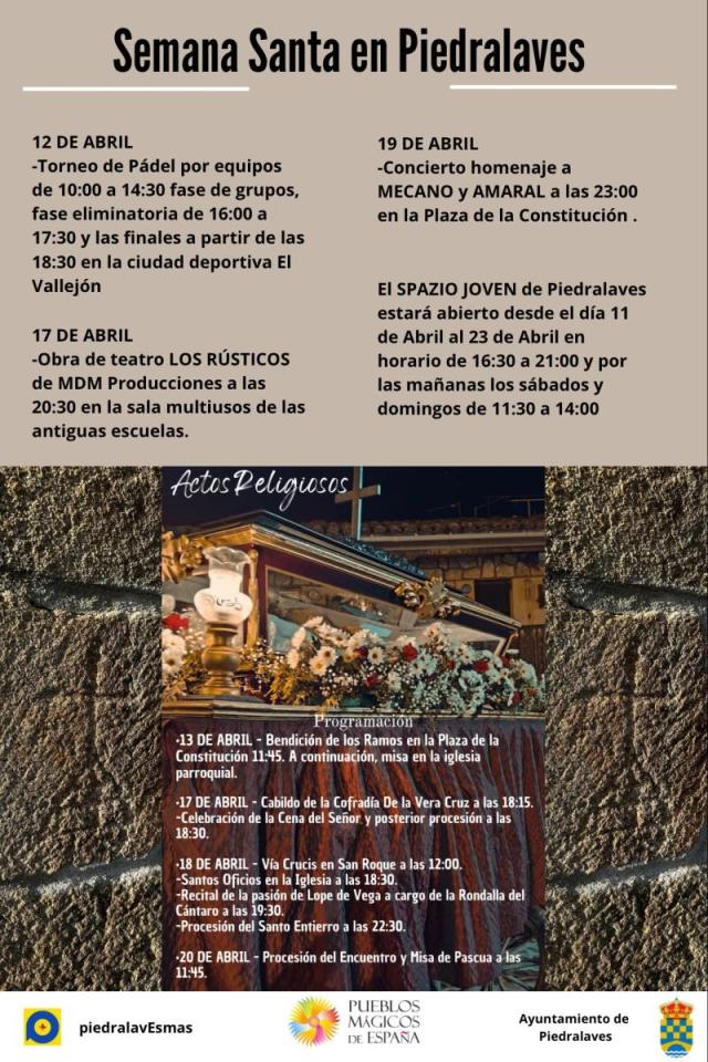 El Ayuntamiento de Piedralaves presenta las actividades programadas para los días de Semana Santa 2025.
