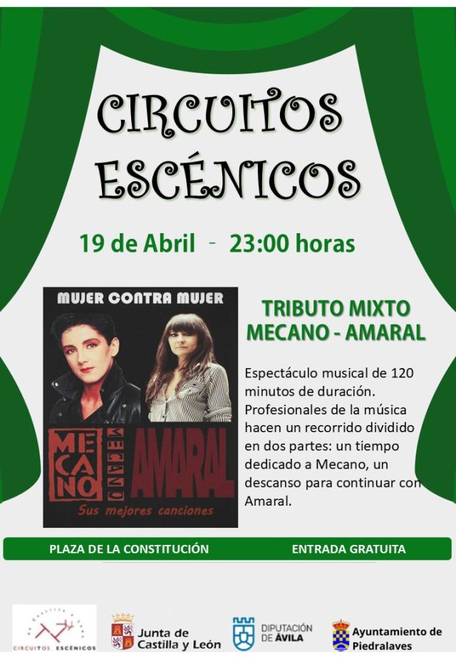 En esta ocasión “Tributo Mixto Mecano – Amaral”, concierto de música contemporánea-pop de una duración aproximada de 120 minutos.