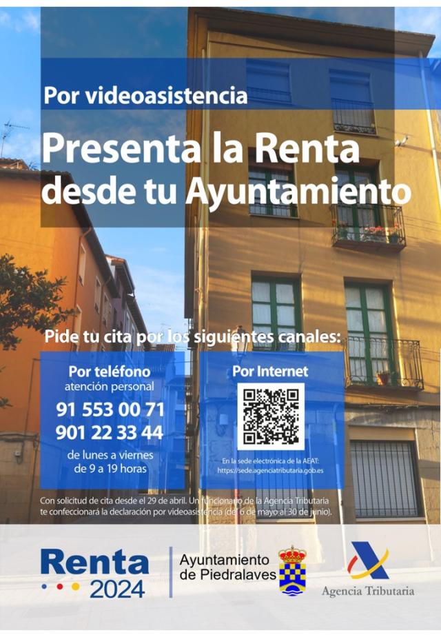 A través del Ayuntamiento de Piedralaves y en contacto con la Agencia Tributaria un año más se prestará el servicio de videoasistencia para confeccionar la declaración de la Renta 2024 a cualquier persona, de cualquier edad.
